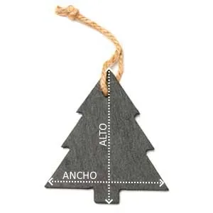 Adorno navideño de pizarra disponible en dos diseños: árbol y estrella. Incluye lazo para colgar en el árbol de navidad.