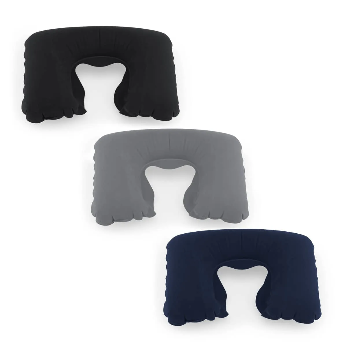 Almohadilla inflable de viaje con suave tacto antelina. Una opción práctica y cómoda, ya que al ser inflable permite su cómodo desplazamiento, ofreciendo comodidad en su uso.