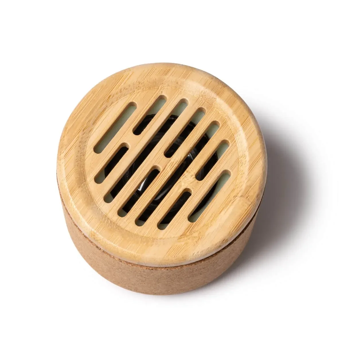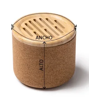 PRODUCTO QUE SE DESCATALOGARÁ CUANDO SE AGOTEN LAS EXISTENCIAS – Altavoz inalámbrico elaborado con cuerpo de corcho y superficie de bambú. Con potencia de 3W y batería recargable. Cuenta con botón multifunción, indicador luminoso de carga y salida de audio con conexión Bluetooth. Con puerto Tipo C para carga, cable incluido.