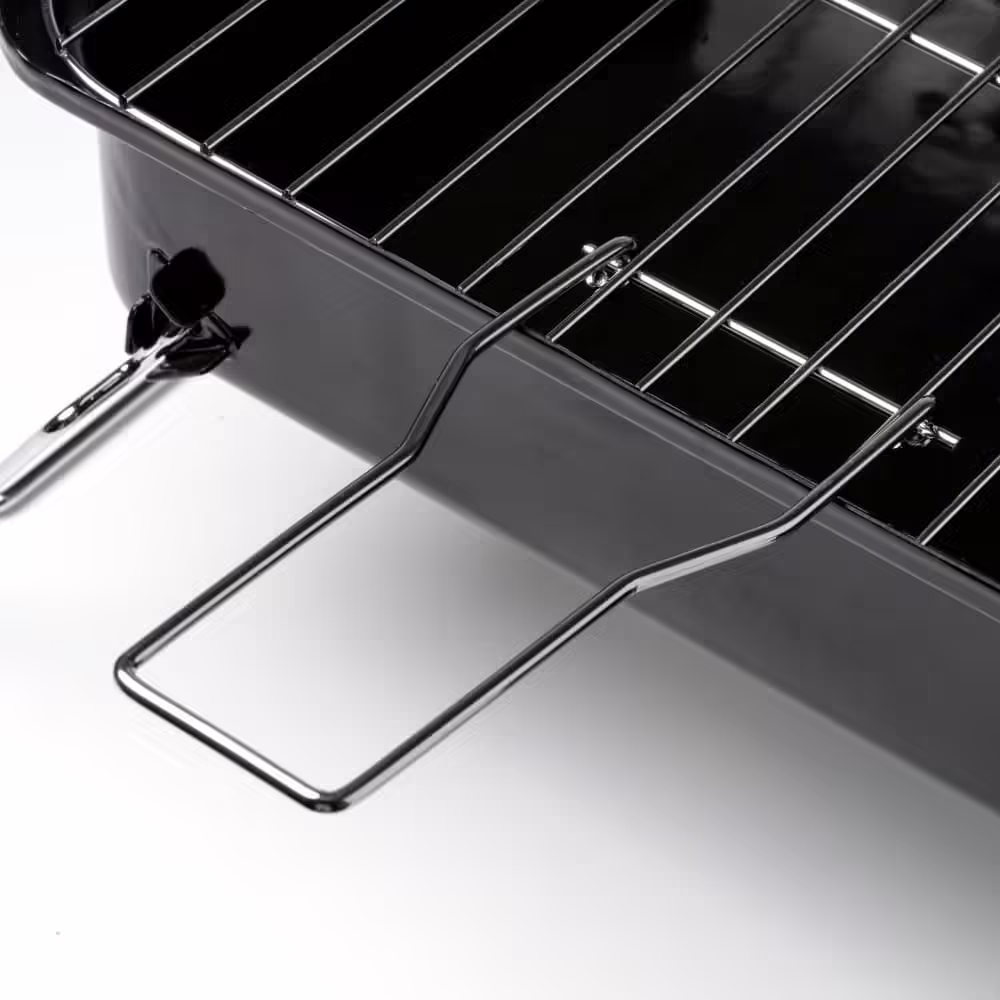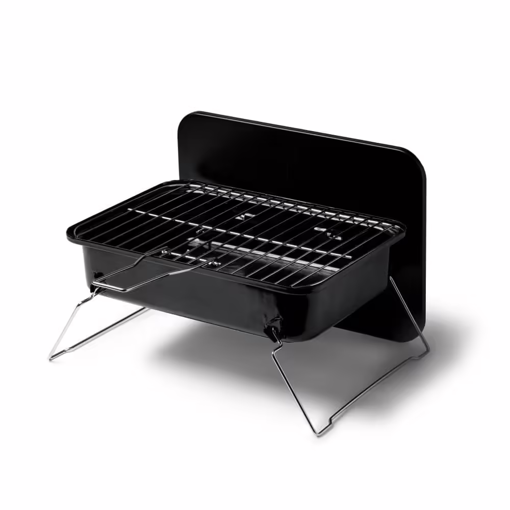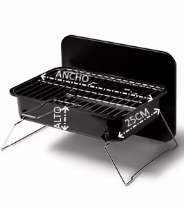 Barbacoa portátil para carbón realizada en acero inoxidable. Es plegable, mejorando su transporte, y cuenta con parrilla desmontable. Sus piezas son fácilmente desmontables para facilitar su limpieza. Incorpora unas patas de sujeción abatibles para hacerla más estable y práctica en su uso, además de mejorar su guardado.