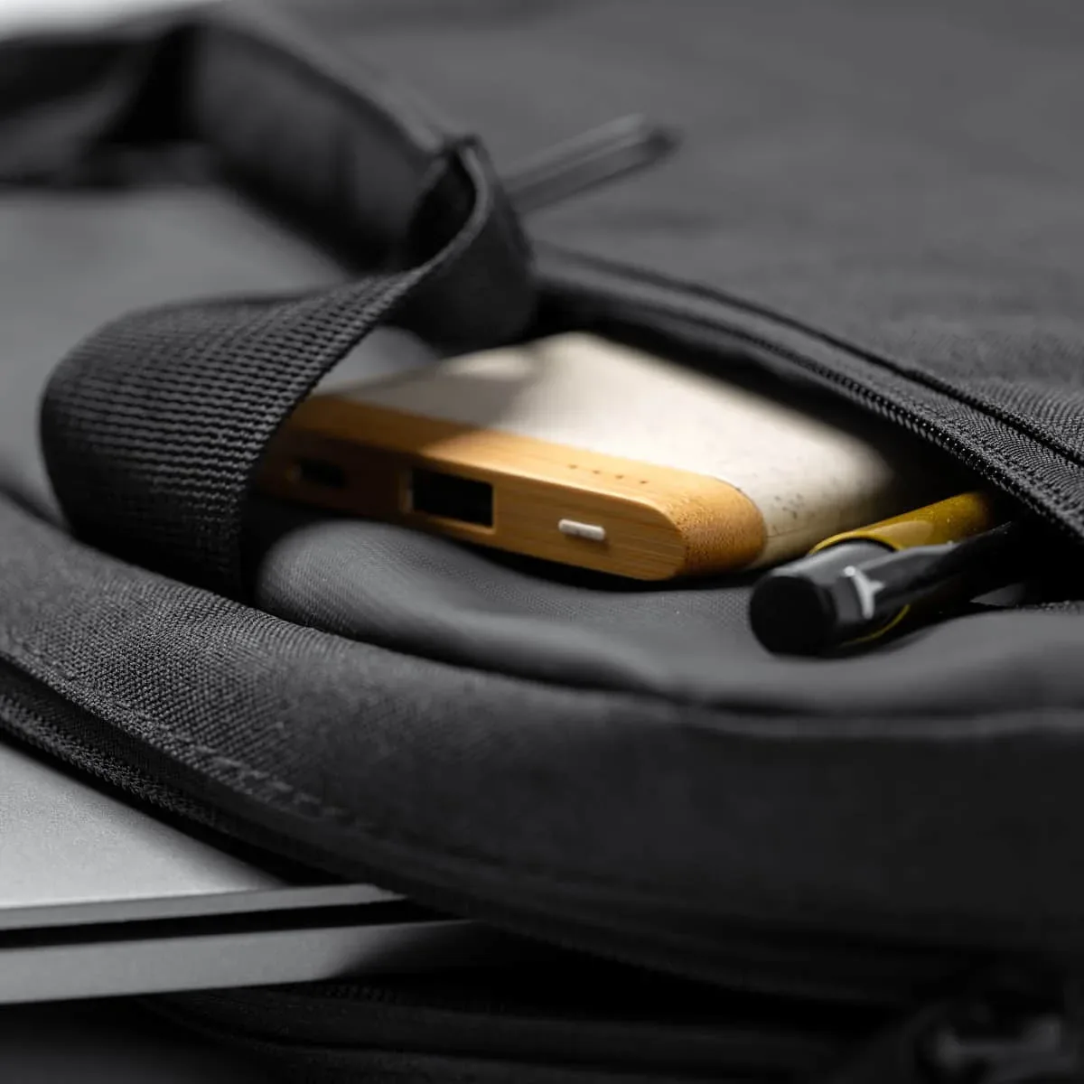 La carcasa de fibra de trigo y bambú le da a esta batería un aspecto natural y sostenible. Es una alternativa respetuosa con el medio ambiente a las baterías convencionales de plástico.