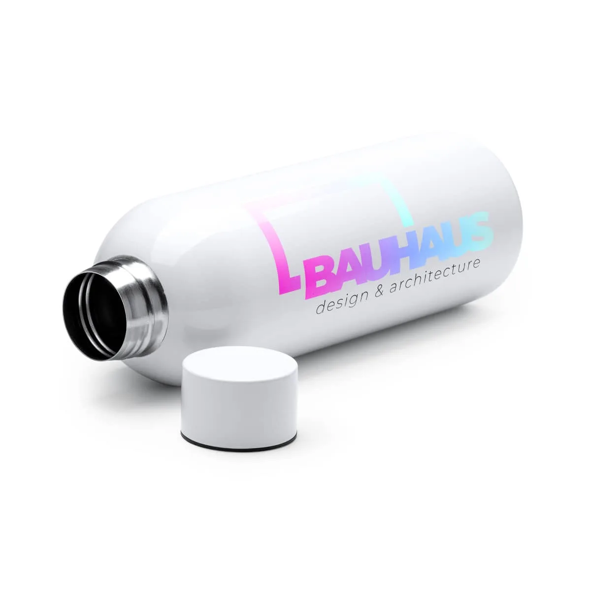 Bidón de acero inoxidable 304 en acabado sólido con fantástico diseño. Con capacidad de 800ml y sistema antigoteo. Color blanco para sublimar y realizar un bidón único.