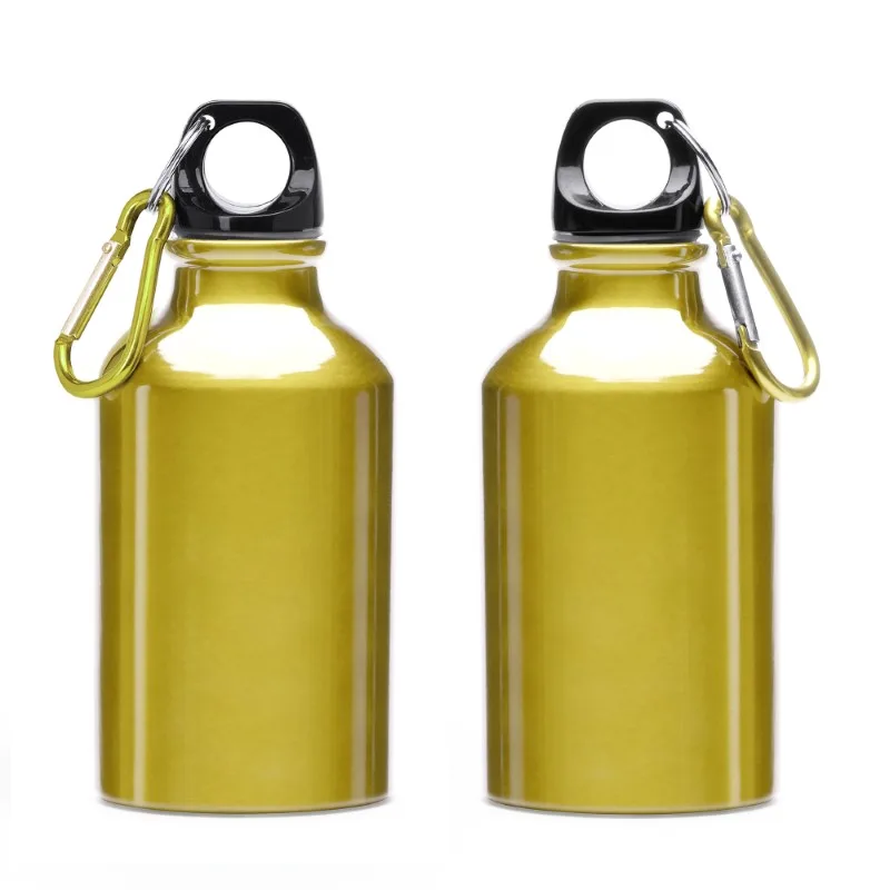 Bidón de aluminio con mosquetón. Tapón en color negro y mosquetón del mismo color metálico que la botella. Capacidad 330ml. Presentación en caja diseño.