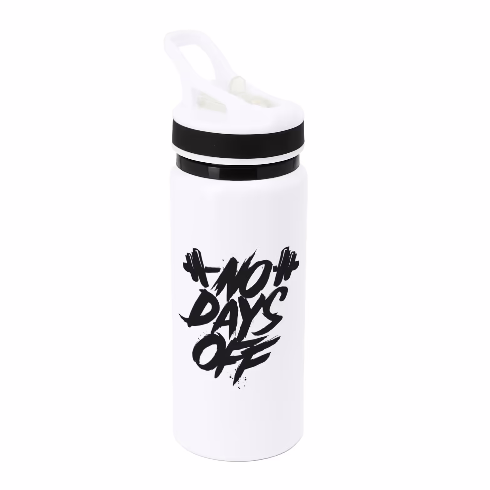 Bidón de aluminio con cuerpo en acabado sólido. Capacidad 680 ml. Tapón con boquilla retráctil y asa para transporte. Presentación en caja diseño.