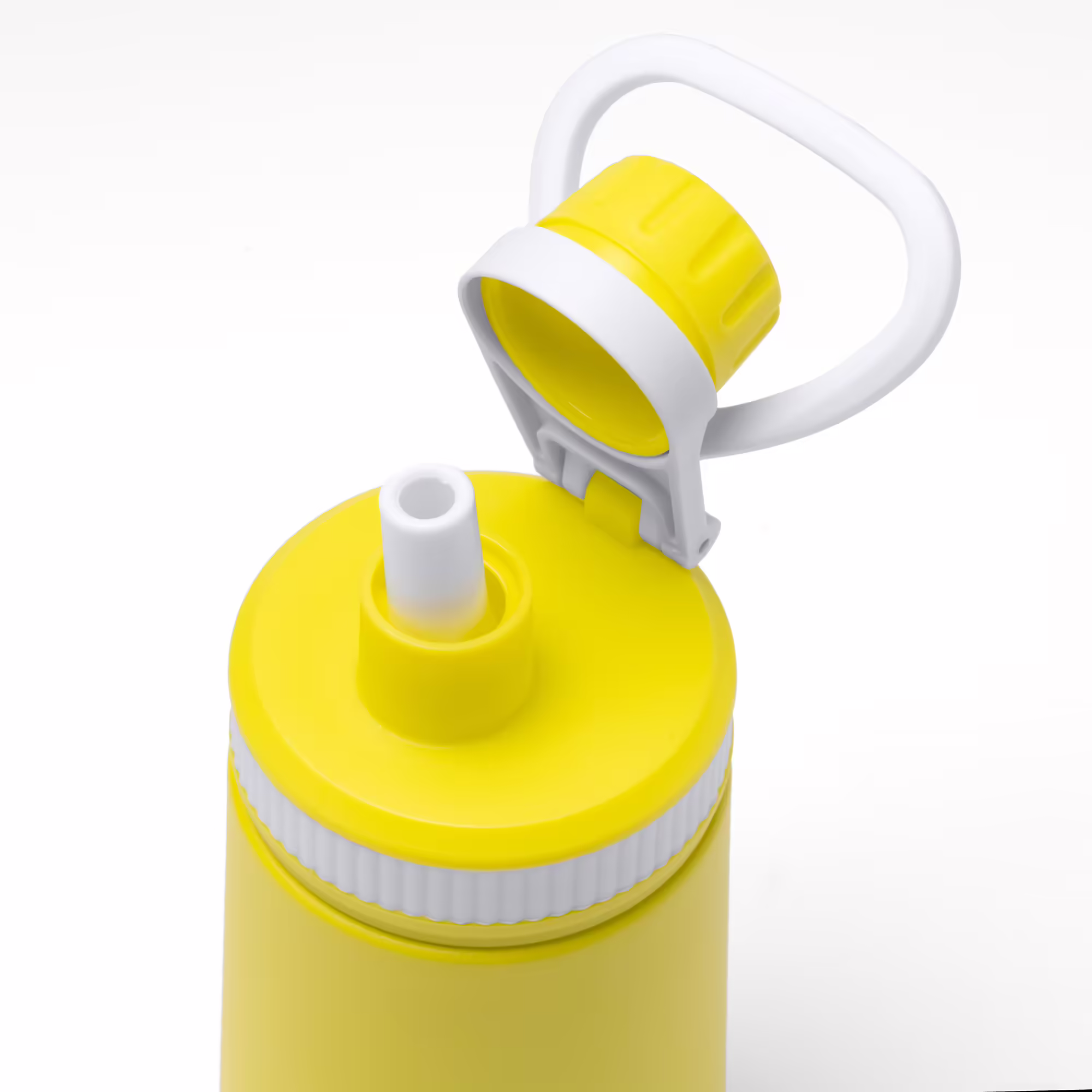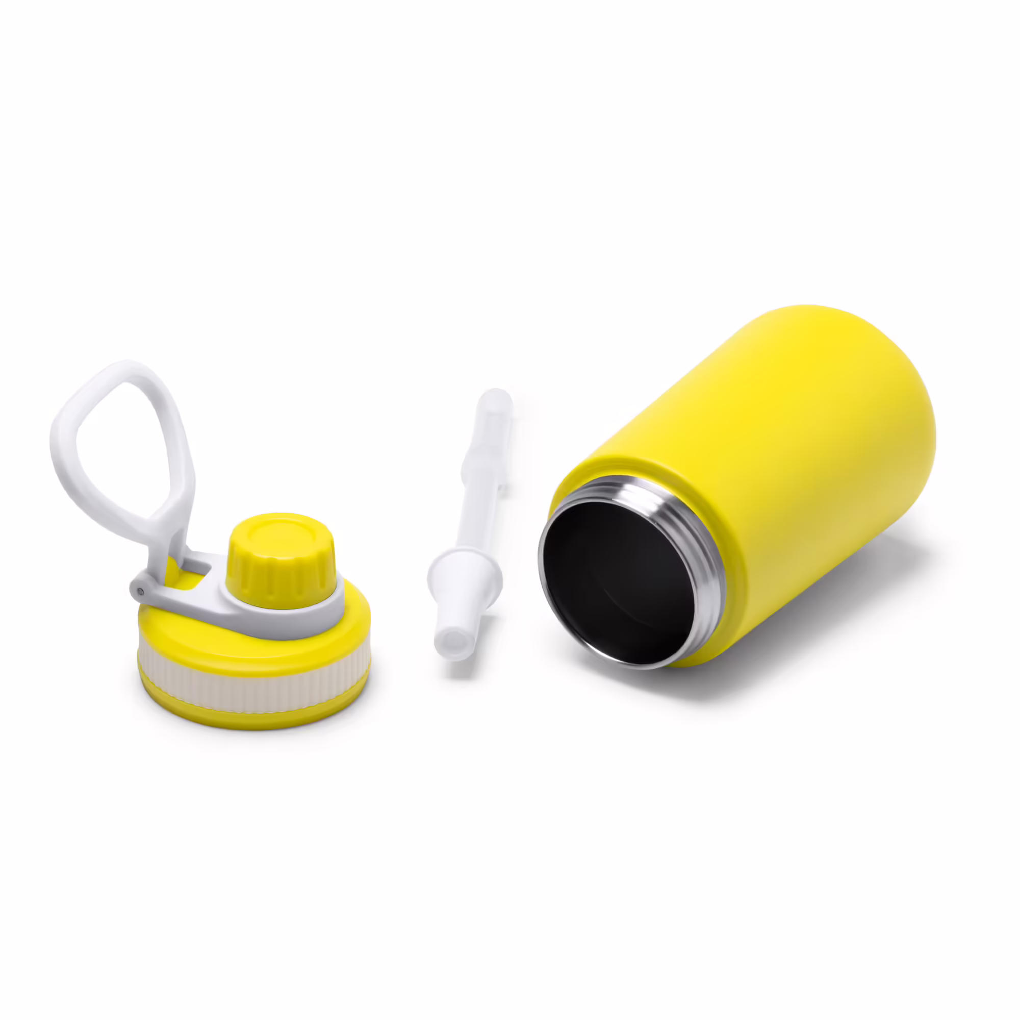 El bidón de acero inoxidable de doble pared, con capacidad de 350 ml, está diseñado para mantener las bebidas a la temperatura ideal. Incluye una pajita y un tapón con cierre de seguridad para evitar derrames. Su asa de transporte facilita su manejo, mientras que la base antideslizante proporciona estabilidad. Ideal para uso diario, este bidón combina practicidad y durabilidad.