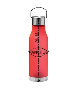 Bidón de RPET de acabado translúcido efecto hielo con tapa, asa y base de acero inoxidable. Capacidad 600 ml.