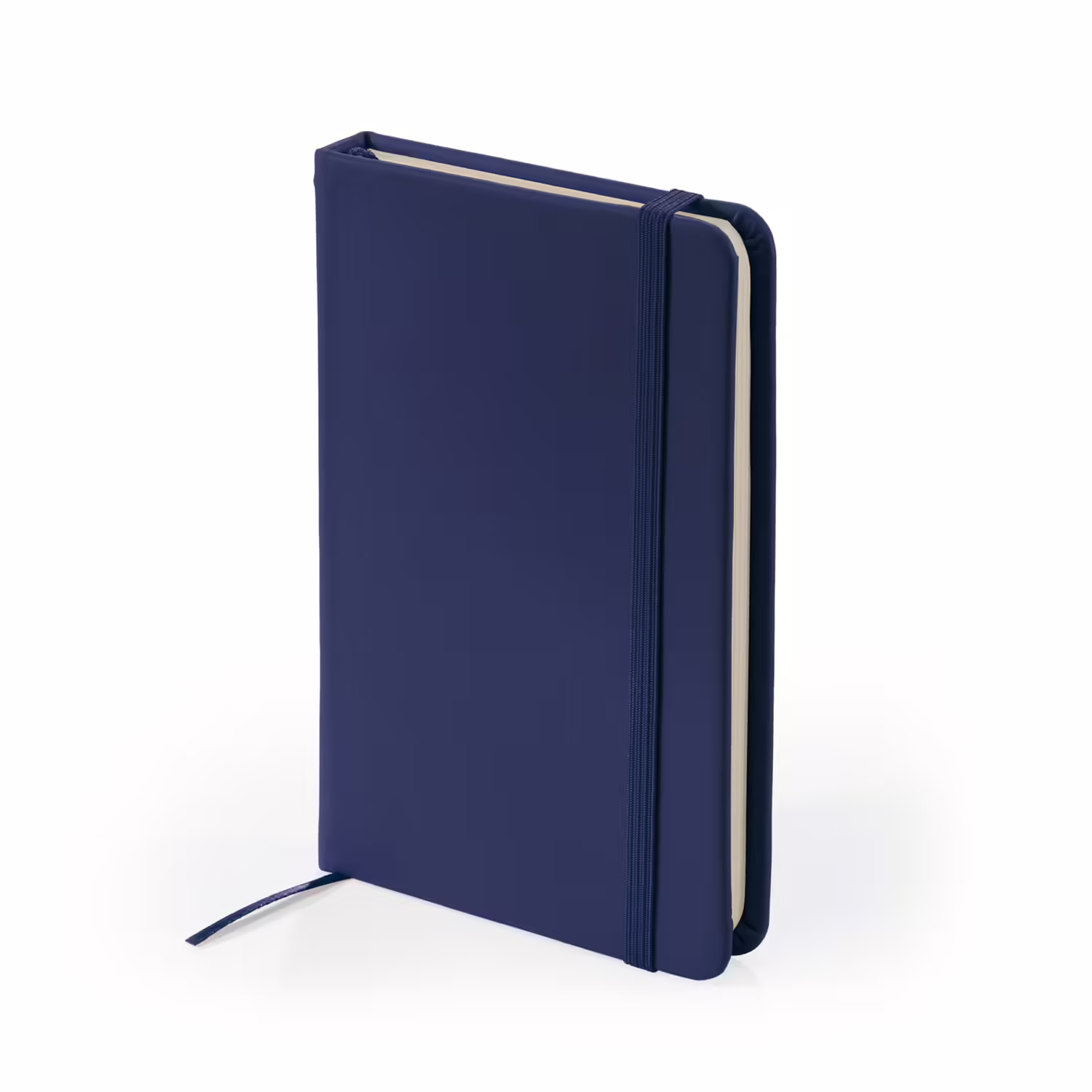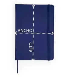 Bloc de notas A6 con tapa rígida de polipiel. Marcapáginas y banda elástica. 100 hojas.
