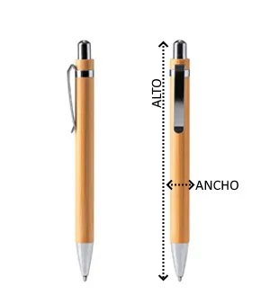 Bolígrafo elegante con cuerpo de bambú con pulsador y accesorios en acabado metálicos. Idóneo bolígrafo para tu escritorio.