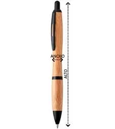 Bolígrafo con pulsador realizado en bambú. Carga Jumbo de tinta azul.