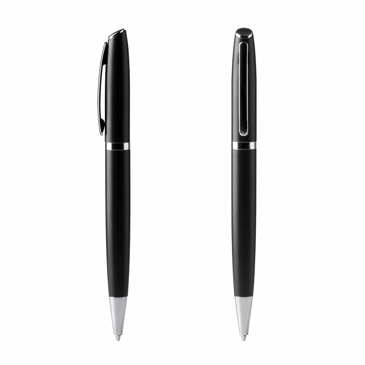 Elegante bolígrafo giratorio con cuerpo de aluminio reciclado y detalles metalizados. Un bolígrafo concienciado con el medioambiente. Carga jumbo de tinta azul.