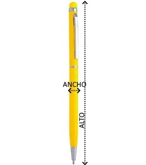 Bolígrafo giratorio de aluminio con puntero táctil en color a juego con el cuerpo. Tinta azul.