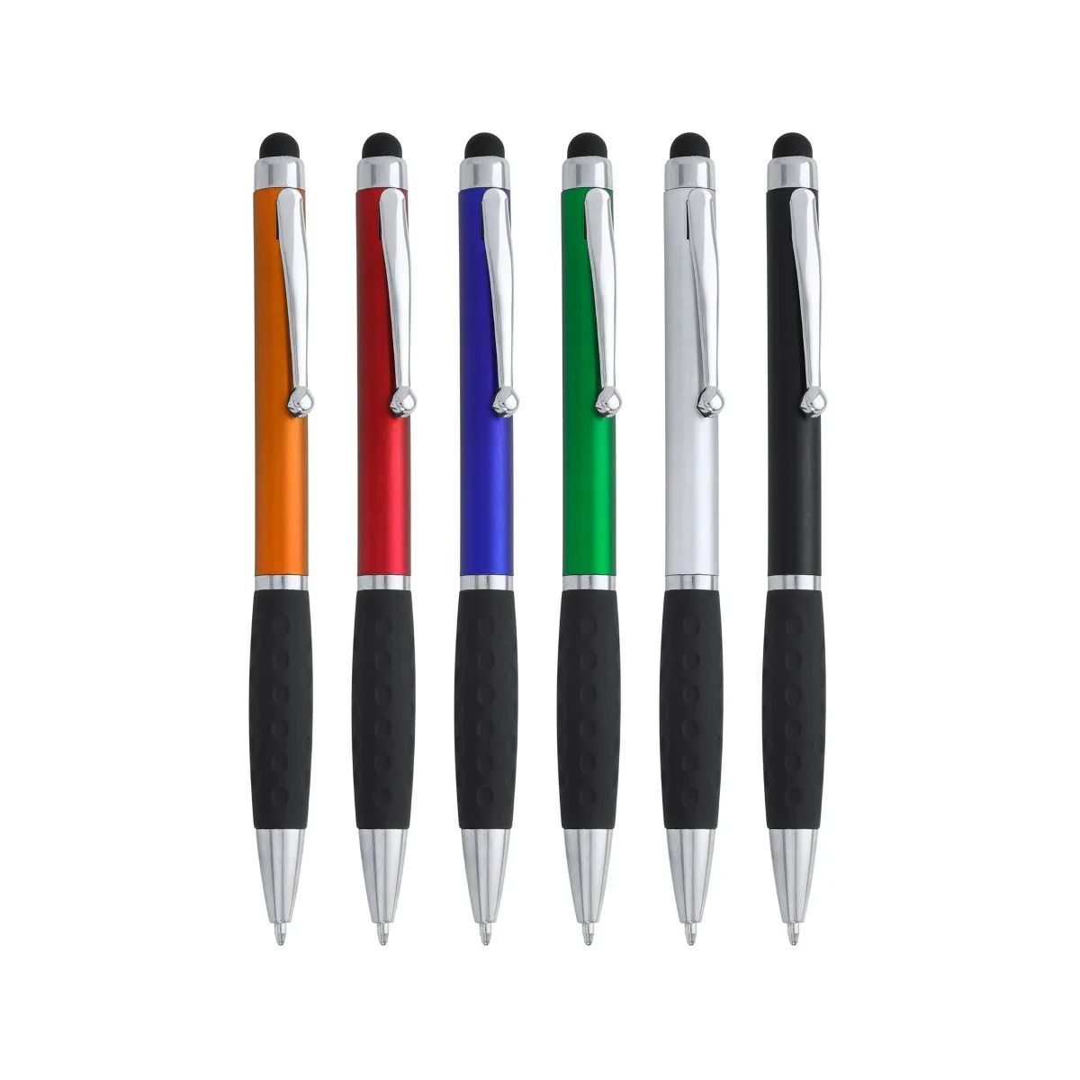 LOS BOLÍGRAFOS VERDE Y NARANJA SE DESCATALOGARÁN EN 2025 – Bolígrafo giratorio en ABS con puntero táctil. Acabado metálizado. Tinta azul.