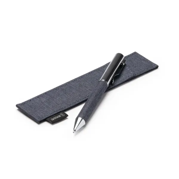 Bolígrafo giratorio realizado en metal y políester reciclado RPET. Tinta azul. Presentado en funda de poliéster reciclado RPET a juego.