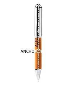 Bolígrafo giratorio con cuerpo realizado en metal y piel reciclada. Tinta azul.