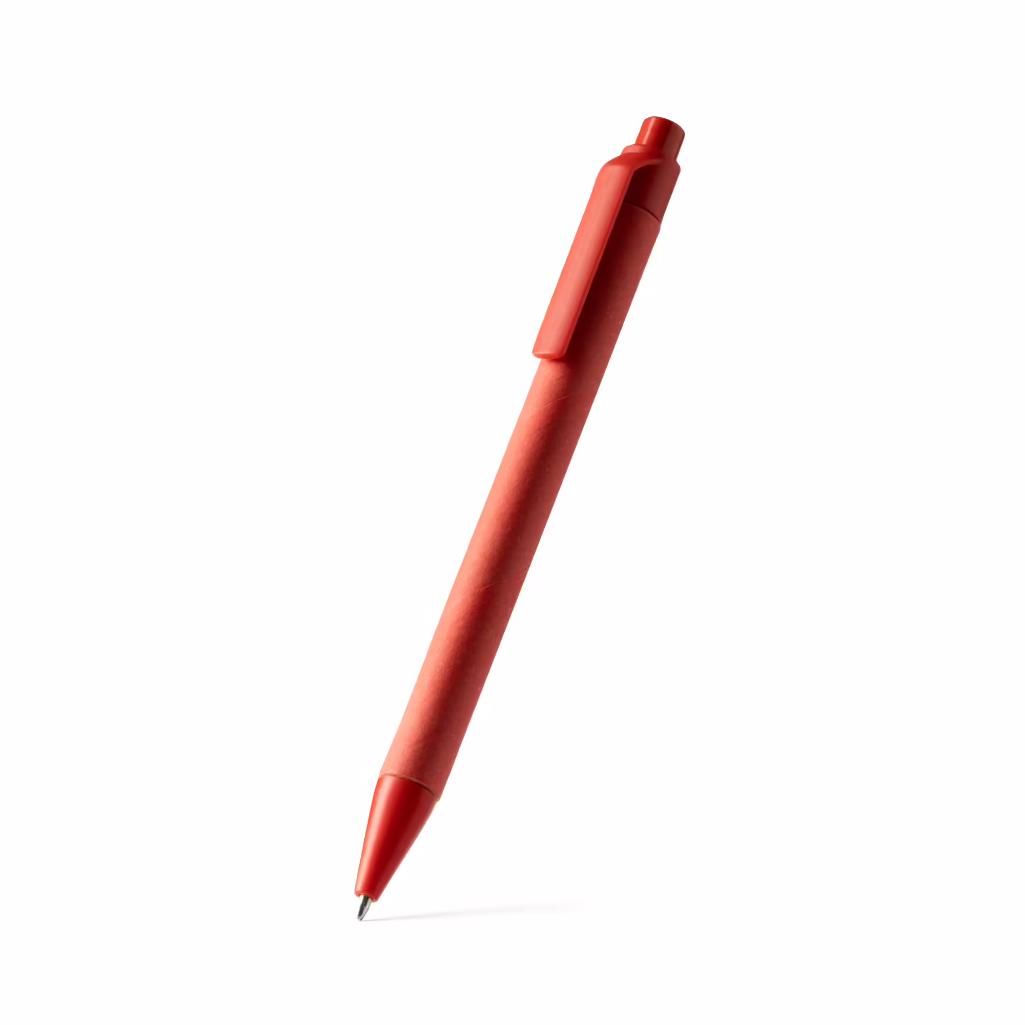 Bolígrafo pulsador con cuerpo de cartón reciclado, punta y clip en ABS reciclado. Tinta azul.