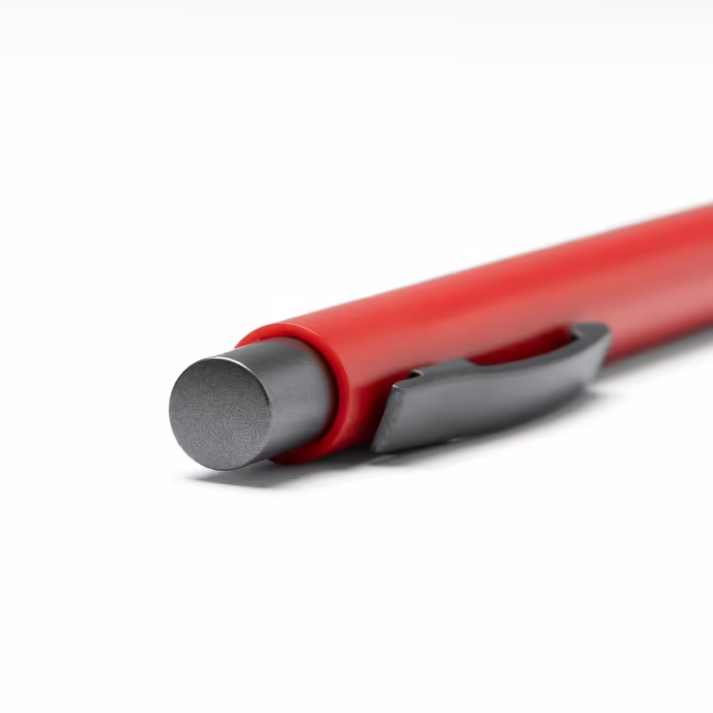 Bolígrafo pulsador de ABS , detalles en acabado metálico mate. Tinta azul.