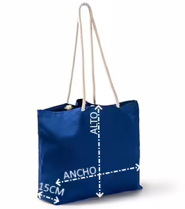 Bolsa de playa realizada 100% en algodón. Cuenta con resistentes asas de estilo náutico fabricadas también en algodón con una longitud de 90 cm, que la convierten en una opción práctica y cómoda.