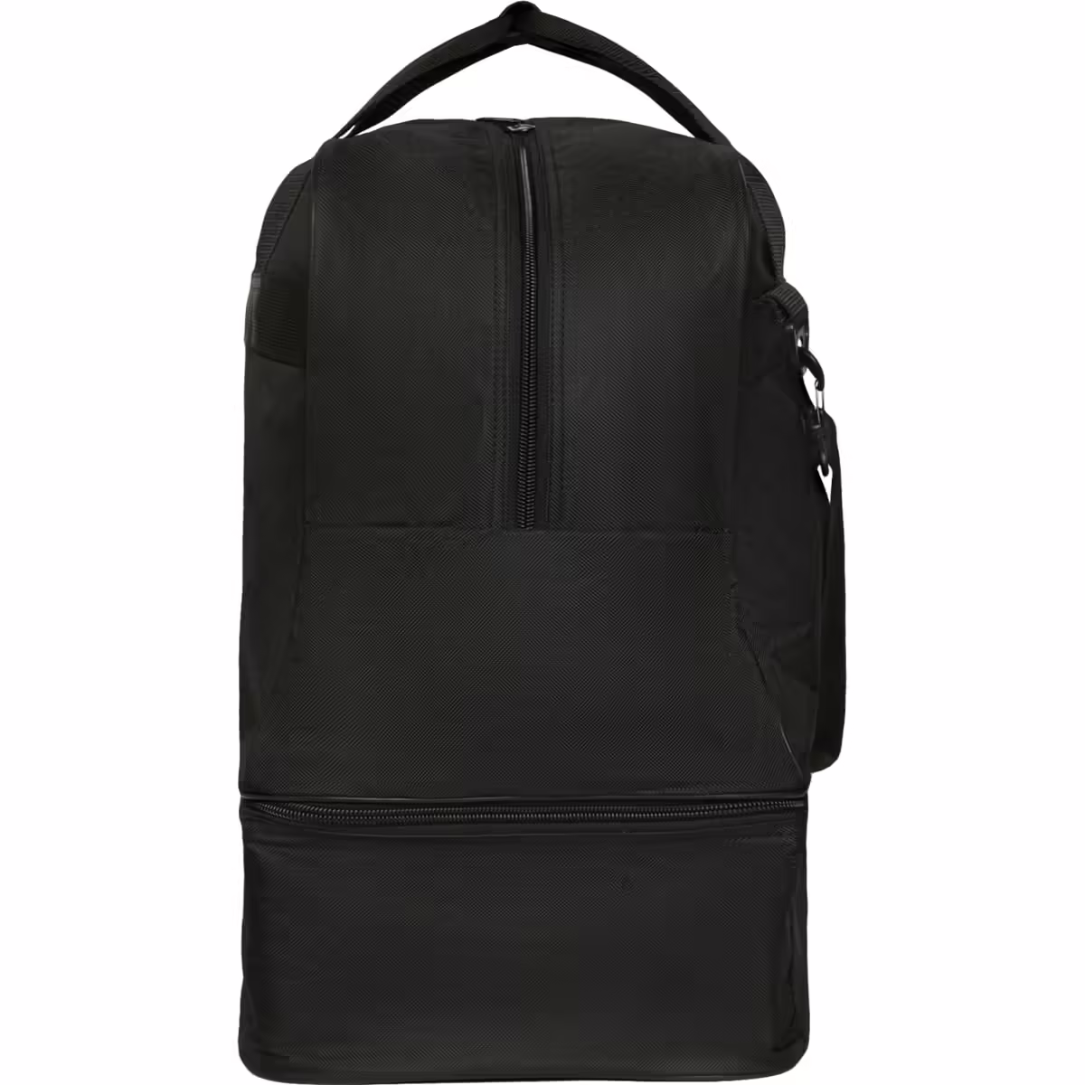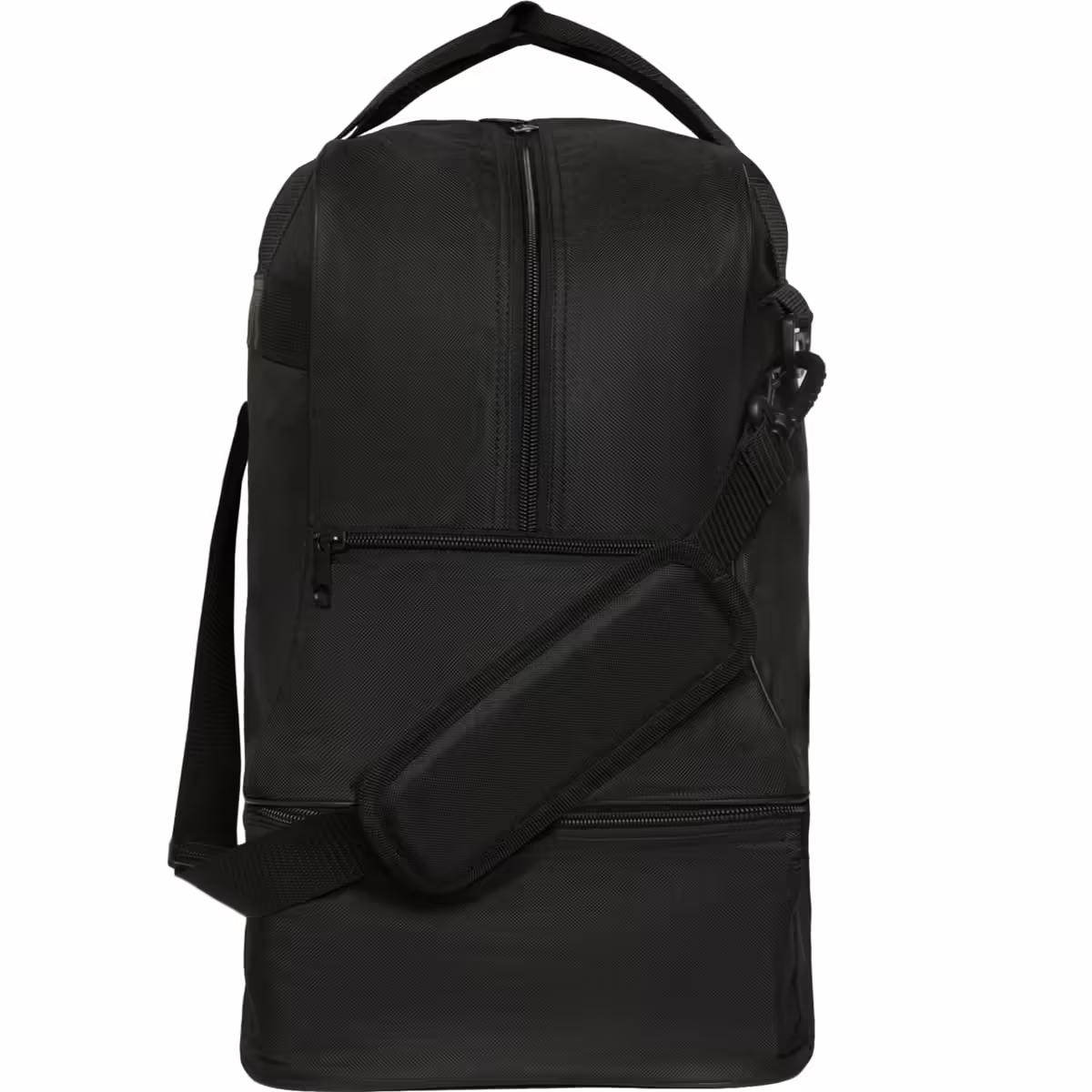 Bolsa deportiva con doble asa y asa larga ajustable para colgar. Bolsillo principal con doble tirador. Bolsillo zapatillero con compartimento extraíble. Anti-humedad. Base con tacos. Fácil limpieza.