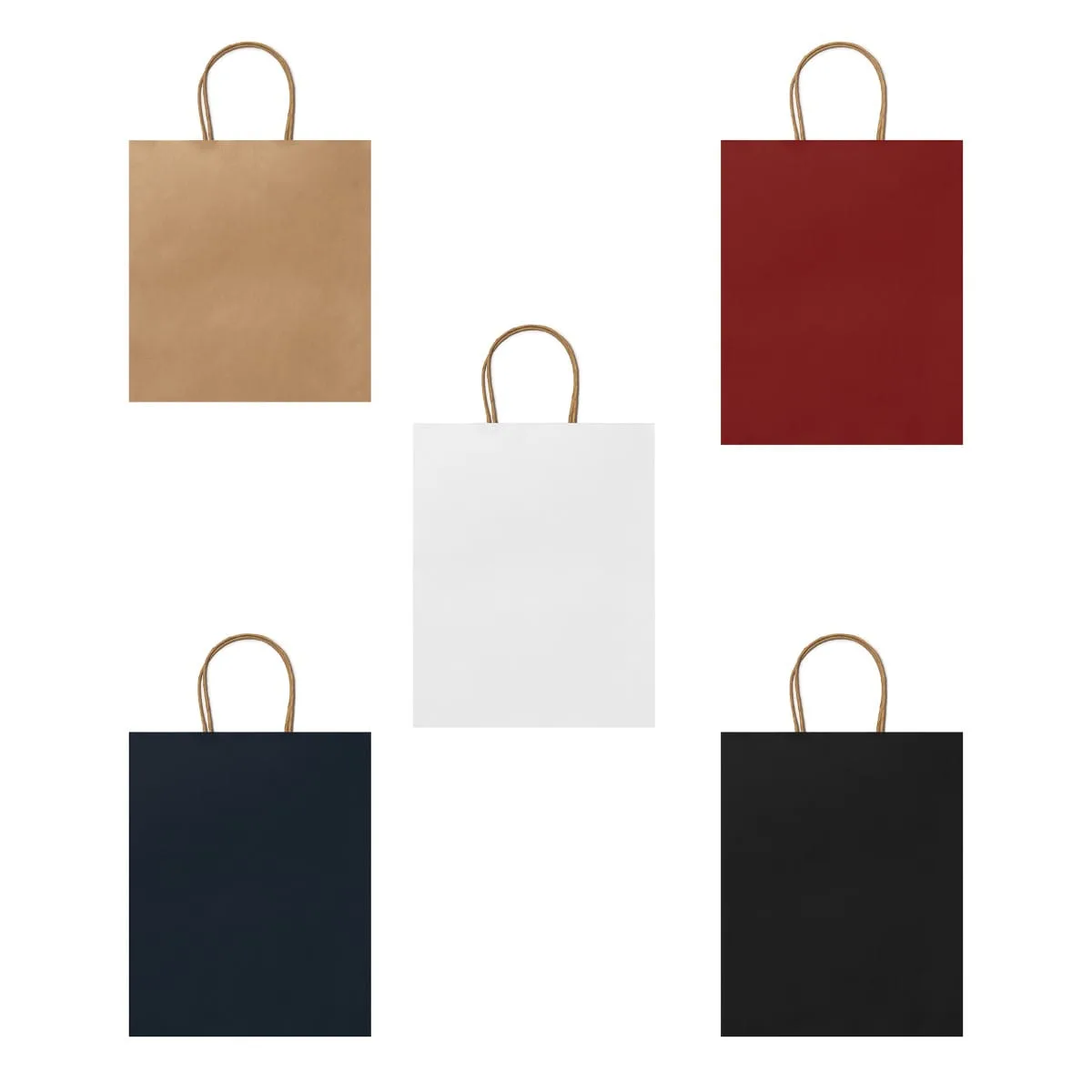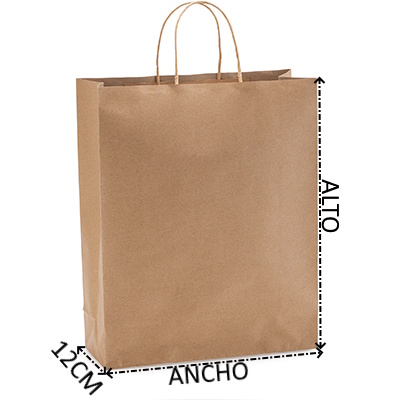 Bolsa de papel en acabado natural 110gr/m2. Asa cortas reforzadas en diseño rizado.