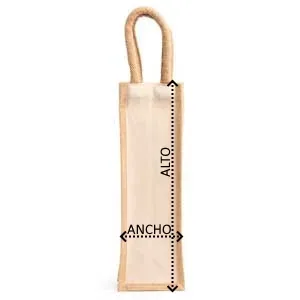 Bolsa de yute laminado y algodón. Asas reforzadas. Ideal para botellas.