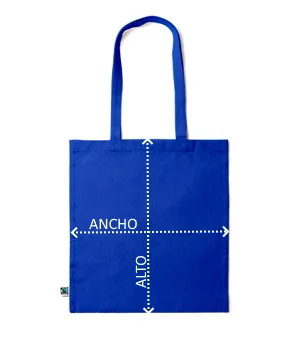 Bolsa 100% algodón Fairtrade de 180 g/m² a color. Cómodas asas largas reforzadas de 70 cm para realizar la compra.