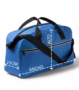 Bolso de deporte realizado en 300D RPET con cierre de cremallera y bolsillo frontal con banda reflectante. Cinta ajustable y asas reforzadas.