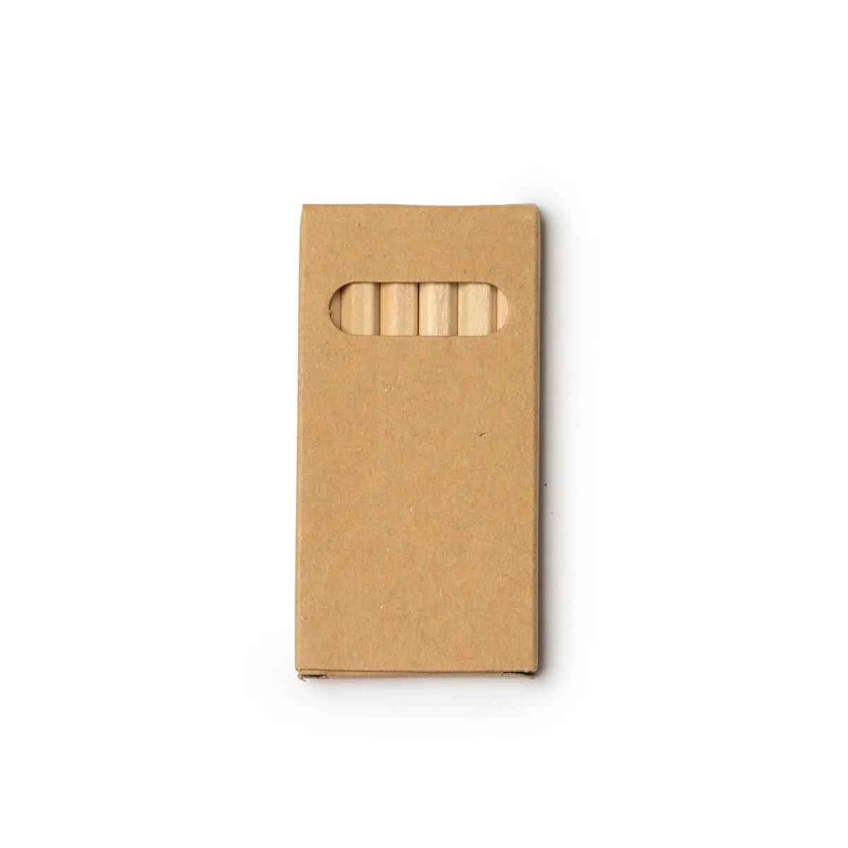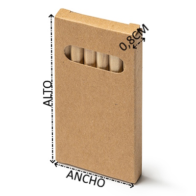Set de 6 lápices de madera en caja de cartón reciclado.
