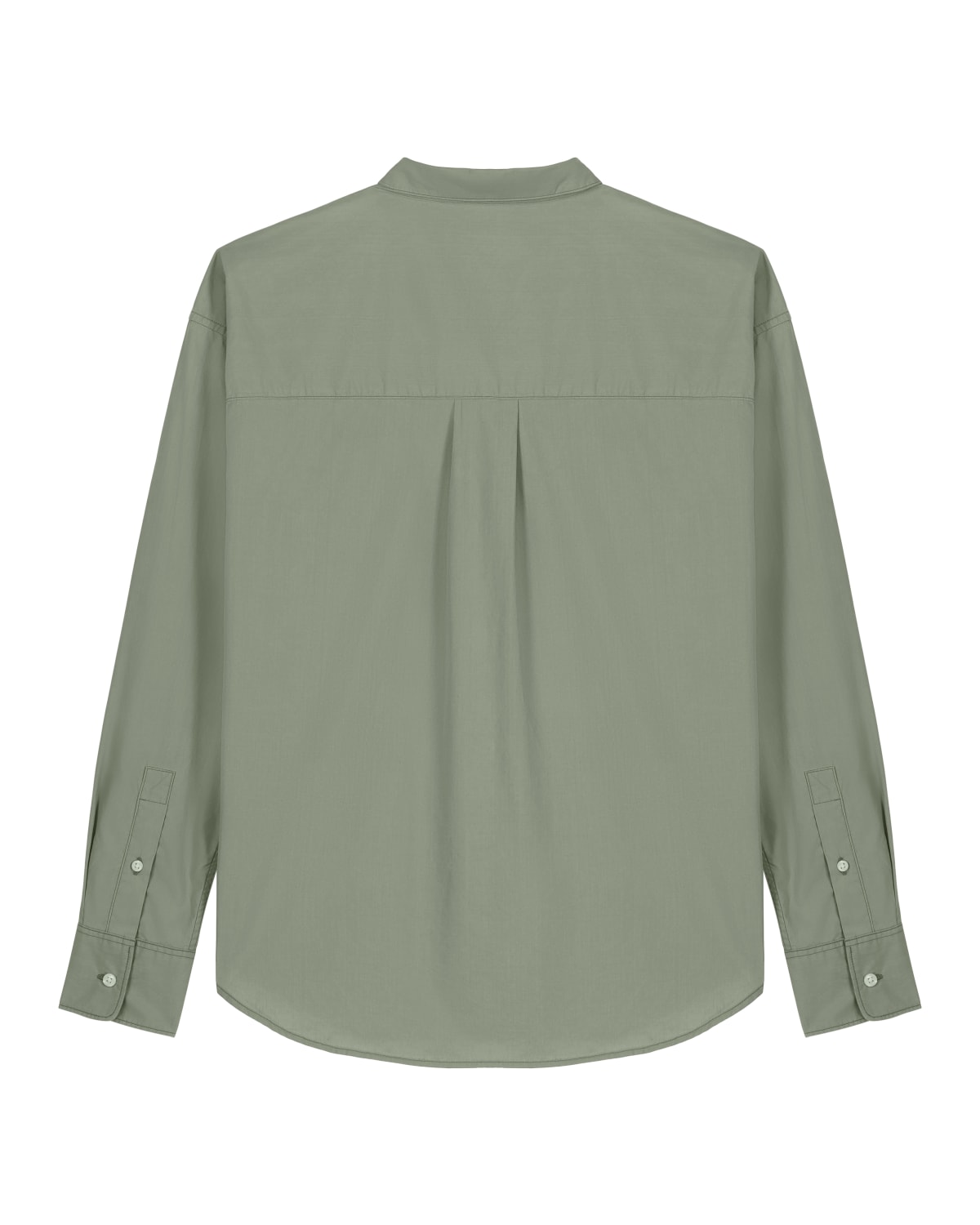 Cuello de punta con pespuntes de aguja simple Pie de cuello Tapeta delantera con pespuntes de aguja simple en cada lado Costura de hombro adelantada Canesú trasero con pliegue de caja Canesú interior en el mismo tejido Mangas montadas Tapeta de la manga con un botón Puño con dos botones Esquinas de los puños redondeadas Pliegues dobles en la costura del puño