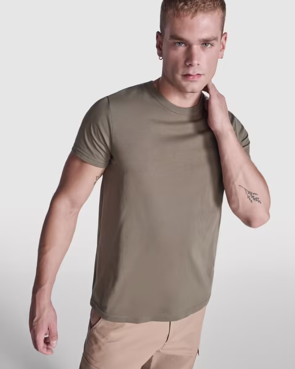 Pero no es solo su apariencia, lo que hace de esta camiseta de manga corta una prenda esencial en cualquier armario. No, la calidad de ésta camiseta de manga corta para hombre es magnífica, 100% algodón peinado (tejido en galga fina acabado compactado), punto liso 180 g/m2.  Y además, tiene cuello de 4 capas, cubre-costuras reforzado en el cuello y en los hombros y, costuras laterales.
