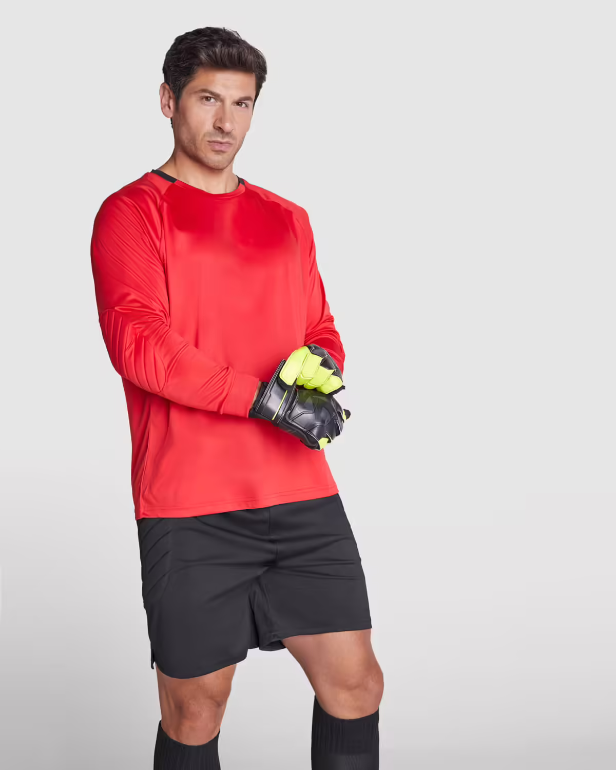 Camiseta de portero unisex, manga larga con coderas acolchadas. Paneles a contraste en interior de mangas, y detalle a contraste en la parte posterior de cuello y puños.