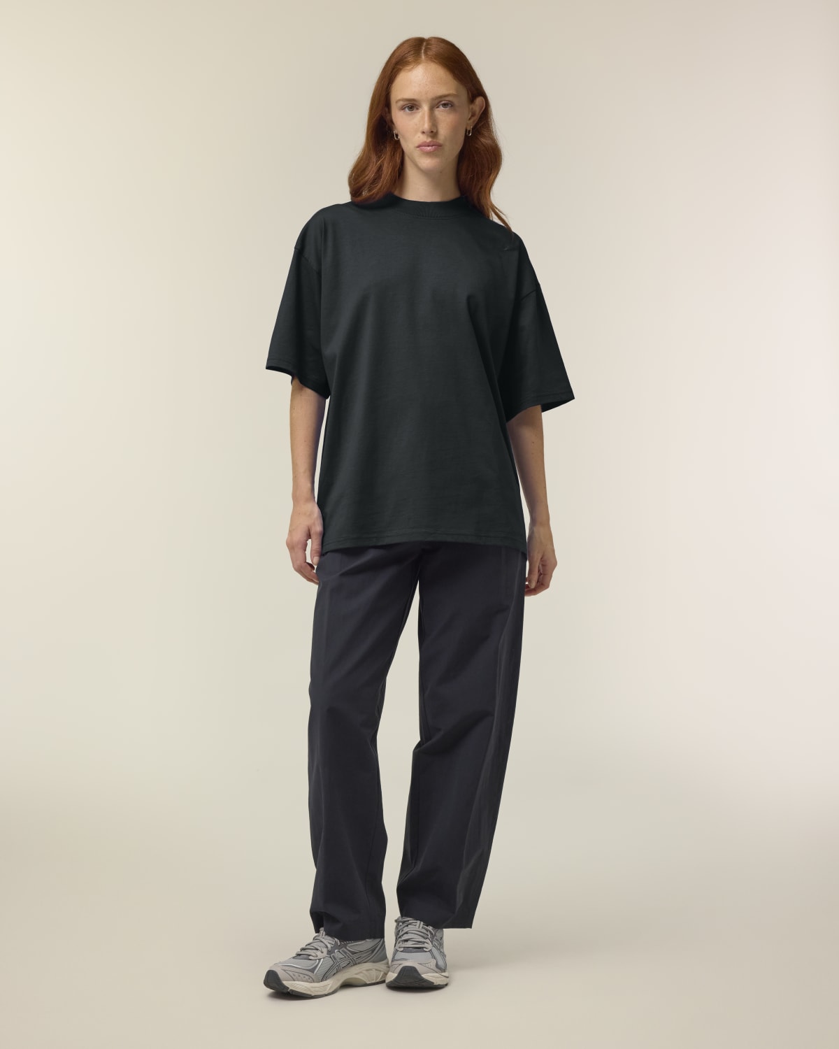Mangas montadas Hombros caídos Cuello simulado de canalé 1×1 Cinta en la parte trasera del cuello Pespunte de doble aguja en las mangas y el dobladillo
