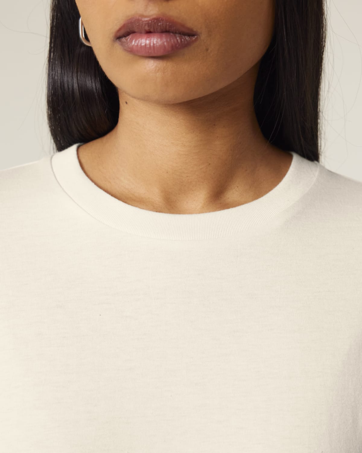 Manga montada Costilla 1×1 en el cuello Doble costura en el puño de la manga y dobladillo Cinta interna en el cuello de la misma tela