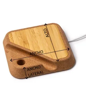 PRODUCTO QUE SE DESCATALOGARÁ CUANDO SE AGOTEN LAS EXISTENCIAS – El cargador inalámbrico con cuerpo elaborado en corcho y superficie de carga inalámbrica en bambú. Con potencia de 10W y soporte para smartphone y para bolígrafo. Compatible con dispositivos provistos de tecnología de carga inalámbrica.