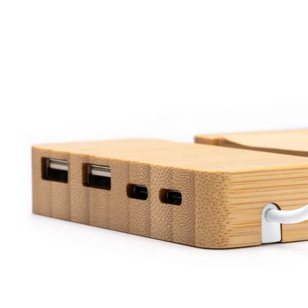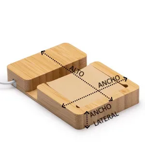 El cargador inalámbrico de bambú es una solución ecológica y conveniente para cargar tus dispositivos de forma inalámbrica. Con una potencia de 10W, te brinda una carga rápida y eficiente sin necesidad de cables desordenados. Este cargador también incluye un práctico portanotas de 130 páginas de 6×6 cm, perfecto para tomar notas o apuntar ideas sobre la marcha. Es compatible con dispositivos equipados con tecnología inalámbrica, y además cuenta con salidas Micro USB y Tipo C. Su función de soporte para smartphone te permite colocar tu teléfono en posición vertical. El cargador viene con un cable Tipo C integrado para mayor comodidad y versatilidad. Su diseño de bambú le agrega un toque de elegancia y estilo natural. Además, se presenta en una caja de diseño eco, lo que refuerza su compromiso con la sostenibilidad y lo convierte en un regalo ideal para aquellos que se preocupan por el medio ambiente. Con el cargador inalámbrico de bambú, es una opción inteligente y consciente para aquellos que buscan una carga inalámbrica fácil y respetuosa con el medio ambiente.