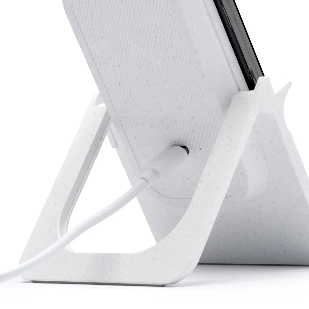 El cargador inalámbrico con cuerpo de bambú y base de fibra de trigo ofrece una solución sostenible y conveniente para cargar tu smartphone. Simplemente coloca tu dispositivo sobre el cargador y déjalo cargar sin necesidad de cables ni enchufes. El cuerpo de bambú y la base de fibra de trigo no solo le dan un aspecto natural y elegante, sino que también demuestran tu compromiso con el medio ambiente al utilizar materiales sostenibles. Con una potencia de carga de 15W, este cargador inalámbrico es compatible con dispositivos que admiten tecnología inalámbrica. Además, se incluye un cable Tipo C en el paquete para una conexión rápida y fácil. El cargador inalámbrico se presenta en una caja diseño eco, lo que resalta su enfoque en la sostenibilidad y el cuidado del medio ambiente. Con el cargador inalámbrico de bambú y base de fibra de trigo, cargar tu smartphone es más conveniente y respetuoso con el medio ambiente. Disfruta de una carga inalámbrica rápida y eficiente mientras contribuyes a un estilo de vida más sostenible.