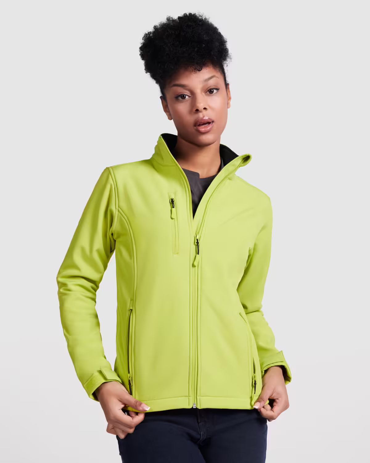 Softshell compuesto de 2 capas con corte entallado. Cremallera invertida a tono, con protector de barbilla y tirador. Forro interior en tejido polar. Cuenta con bolsillo exterior en pecho derecho con cremallera a tono y tirador, y dos bolsillos exteriores con cremallera a tono y tirador. Ajustadores en puño con velcro. Bajo con cordón elástico y topes.