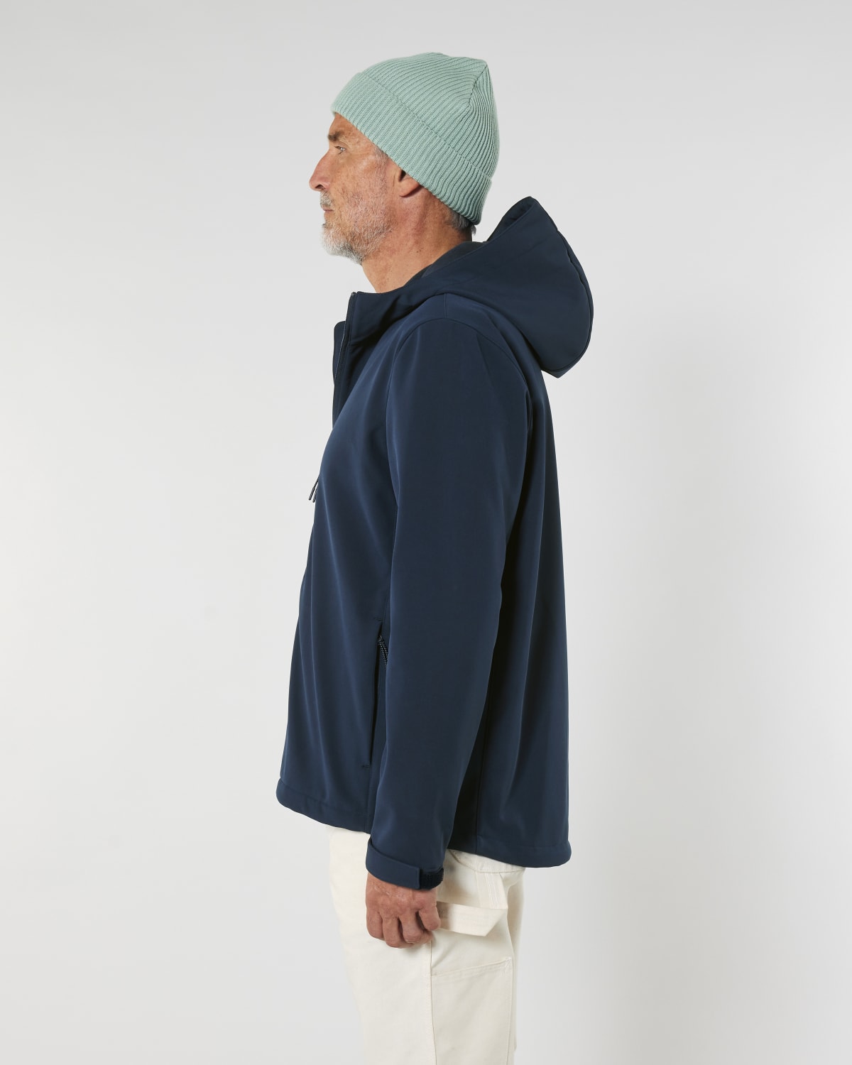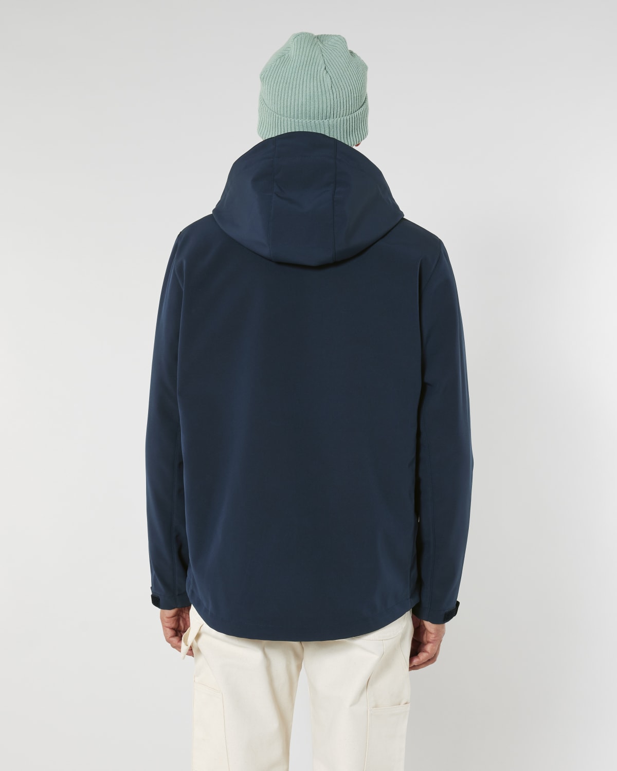 Manga pegada Cuello alto y capucha de tres piezas Capucha y bajo ceñidos con cordón elástico y tope de plástico Cremallera de nailon invertida en el centro Bolsillos exteriores con cremallera y ribete y tirador elástico reflectante Forro polar interior integrado Paneles laterales elásticos para una mejor forma Mangas ceñidas con velcro ajustable Costuras interiores rematadas con ribetes reciclados Impermeable, transpirable y cortavientos
