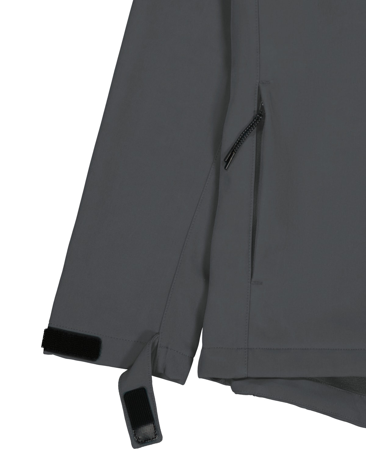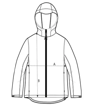 Manga pegada Cuello alto y capucha de tres piezas Capucha y bajo ceñidos con cordón elástico y tope de plástico Cremallera de nailon invertida en el centro Bolsillos exteriores con cremallera y ribete y tirador elástico reflectante Forro polar interior integrado Paneles laterales elásticos para una mejor forma Mangas ceñidas con velcro ajustable Costuras interiores rematadas con ribetes reciclados Impermeable, transpirable y cortavientos