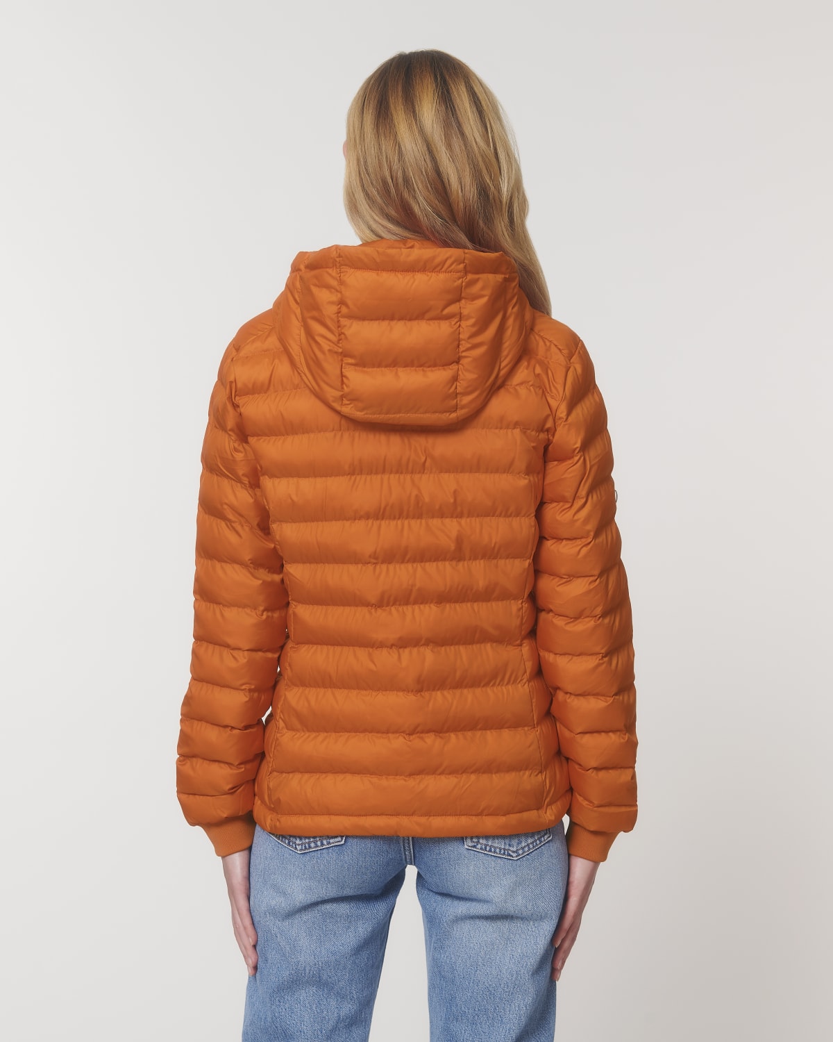 Manga pegada Cuello alto con capucha desmontable con cierres metálicos ocultos en acabado mate Abertura de la capucha y del bajo con tope de plástico ajustable y cordón elástico Cremallera delantera de nylon invertida Bolsillos de ojal con cremallera y tirador de grogrén Enteramente acolchada Piezas laterales para mejorar el cort Canalé suave 1×1 en puño Costuras interiores ribeteadas