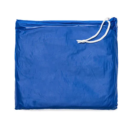 Chubasquero plegable, con capucha y apertura para los brazos, acabado termosellado y cierre lateral con corchetes. Amplia gama de colores. Fabricado en PVC. Funda incluida.