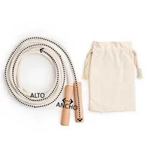 Diviértete con esta comba realizada en algodón de 280 cm y mangos de madera lisos para un agarre más cómodo. Entrena y mantente en forma.