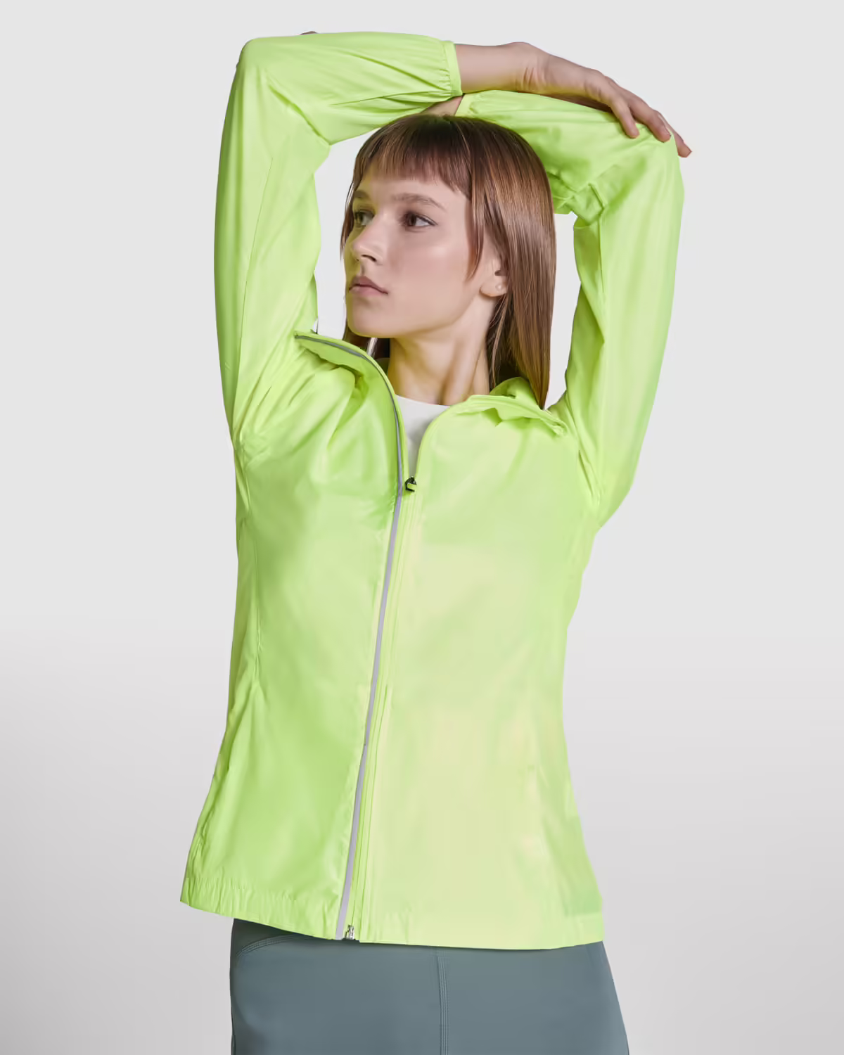 Y aquí la tienes, una chaqueta en cinco colores vibrantes, tejido transpirable, cuello forrado, bolsillo interior y cremallera invertida con detalle reflectante, protector de barbilla y tirador.