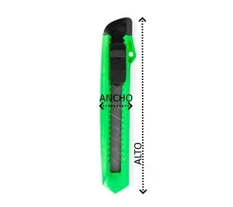 Cutter de cuchilla ancha y cuerpo de ABS. Agarre ergonómico troquelado y capucha extraíble para el corte y ajuste de la cuchilla.