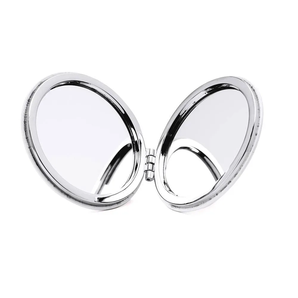 Práctico espejo plegable de bolsillo formado por dos espejos, uno normal y otro de aumento.