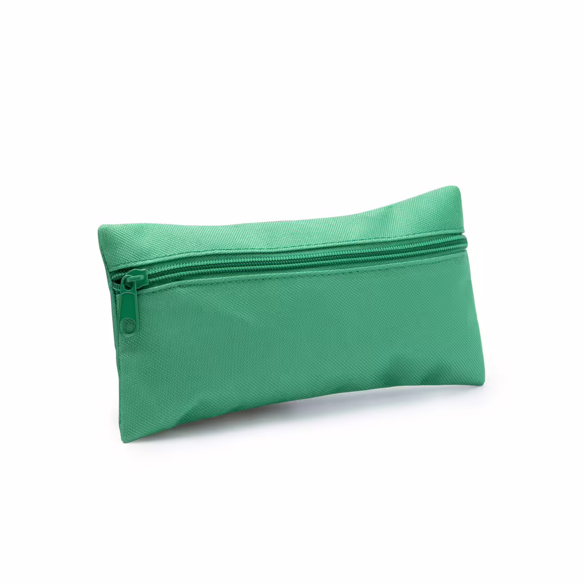 Estuche de acabado en colores lisos con cremallera metálica a juego.