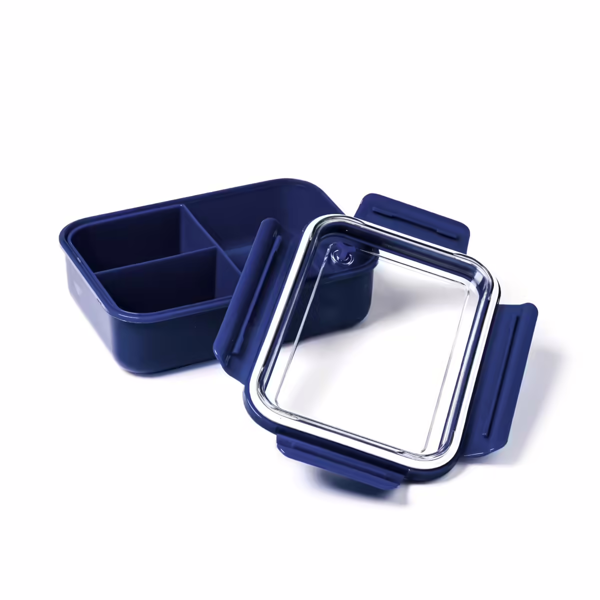La fiambrera de PP cuenta con una tapa transparente que permite ver su contenido fácilmente. Su compartimento principal ofrece una capacidad de 1,3L, ideal para almacenar comidas completas. Además, incluye dos compartimentos supletorios para mantener los alimentos separados y frescos. Este diseño práctico y funcional es perfecto para llevar almuerzos al trabajo, la escuela o de picnic, asegurando una organización eficiente y una mayor versatilidad en el almacenamiento de alimentos.