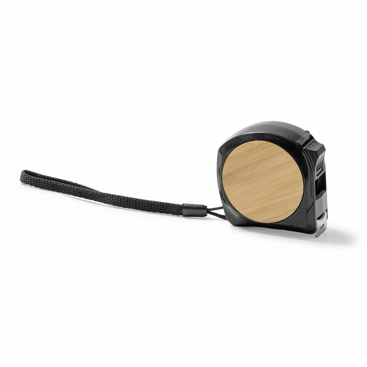 PRODUCTO QUE SE DESCATALOGARÁ CUANDO SE AGOTEN LAS EXISTENCIAS – Flexómetro de 3 metros. Con mecanismo de bloqueo y cuchilla metálica. Clip metálico, cinta de transporte y detalles en bambú.