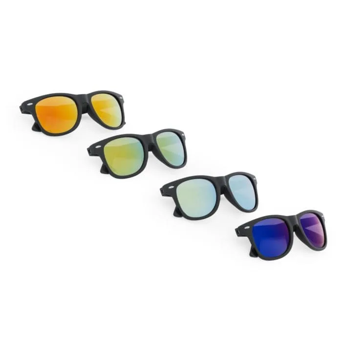 Gafas de sol clásicas en acabado negro mate y lentes de espejo. Protección UV400.