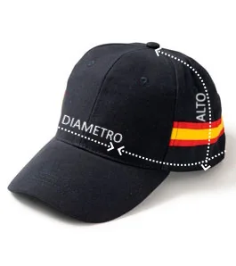 Gorra de 5 paneles 100% algodón peinado con diseño de bandera nacional. Cierre ajustable de velcro y orificios de ventilación.