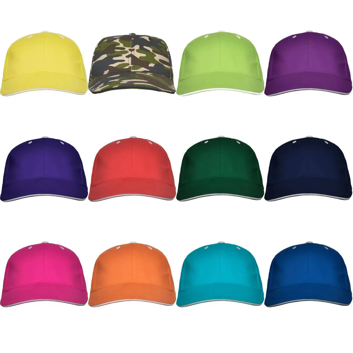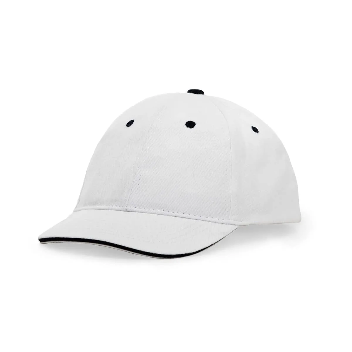 Confeccionada por la casa Roly en 100% algodón, esta gorra consta de seis paneles con sandwich en contraste, seis agujeros de ventilación bordados en contraste, seis líneas pespunte en visera, cinta interior para el sudor y cierre velcro.
